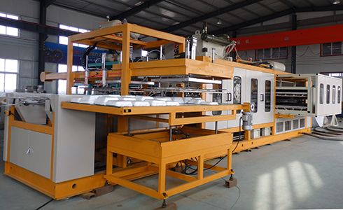 本公司研制開(kāi)發(fā)的自動(dòng)成型裁斷一體機(jī)是一種全能型的熱成型裁斷機(jī)組,以真空成型為主,兼壓空成型、模壓成型及綜合成型,可加工多種熱成型塑料片材。機(jī)組采用全電腦PLC控制,具有結(jié)構(gòu)先進(jìn),性能穩(wěn)定,易操作,產(chǎn)量高,成型面積大,自動(dòng)化程度高等特點(diǎn)。本機(jī)主要用于成型PSP材料,用于食品餐盒、托盤(pán)、碗、杯等各式包裝制品。本設(shè)備的最大優(yōu)點(diǎn)是集成型裁斷一體。生產(chǎn)出的成品直接堆垛收集。本設(shè)備在生產(chǎn)過(guò)程中除了節(jié)能降耗等優(yōu)點(diǎn)外,還大大節(jié)省了工作面積、生產(chǎn)時(shí)間和勞動(dòng)力的支出。